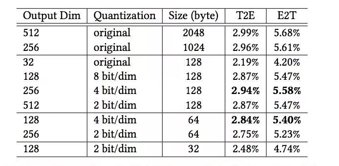 Comparison in NDCG for various feature size with quantization.We observe that 4 bits per value are enough to almost preserve end-to-end recommendation performance.